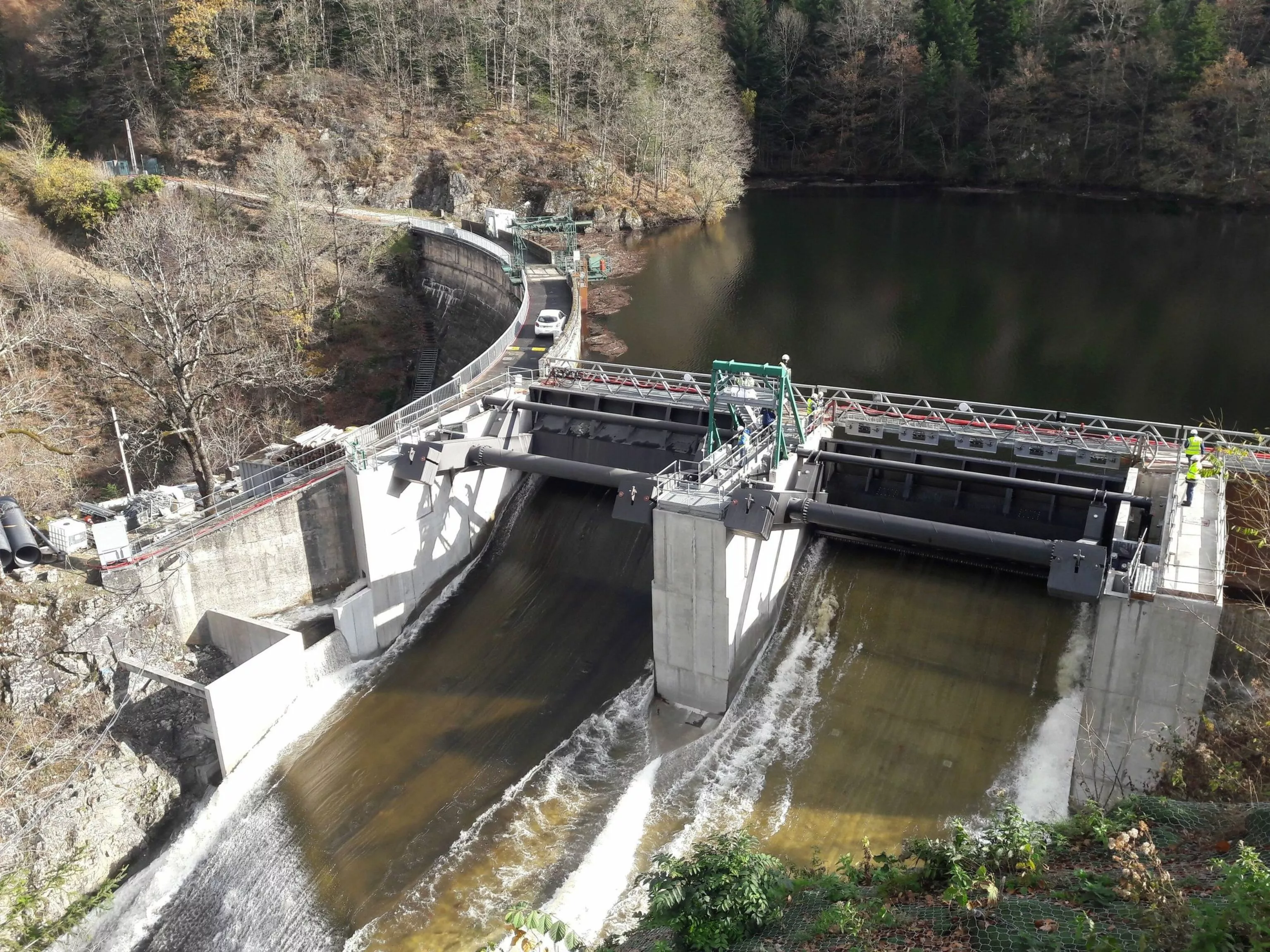 Le barrage des Essarts, situé sur la rivière Grande Rhue, crée un lac de retenue qui permet d’alimenter la prise d’eau vers l’usine de Coindre. Les nouvelles contraintes réglementaires imposant d’accroître les capacités de l’évacuateur pour faire face à la crue Millénale, il a été décidé de reconstruire totalement l’évacuateur, Génie Civil inclus.