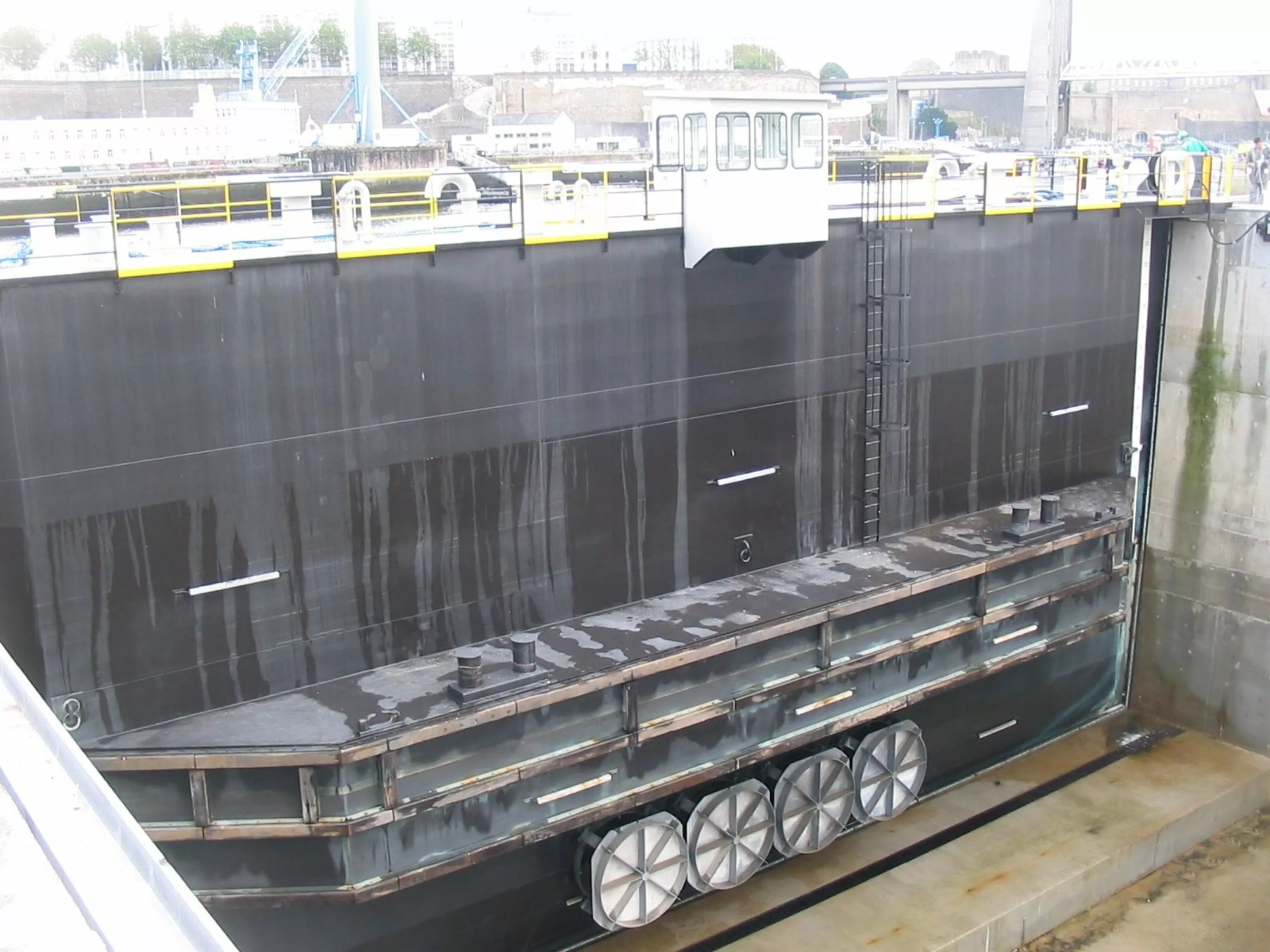 Dans le cadre de travaux généraux d’importance sur le génie civil de la forme N°3 de la DTM de Brest, réalisés par l’entreprise GTM (attributaire des travaux de reconstruction), il s’agissait de fournir l’appareil de bouchure de la forme, la solution du bateau-porte ayant été choisie parmi d’autres propositions.