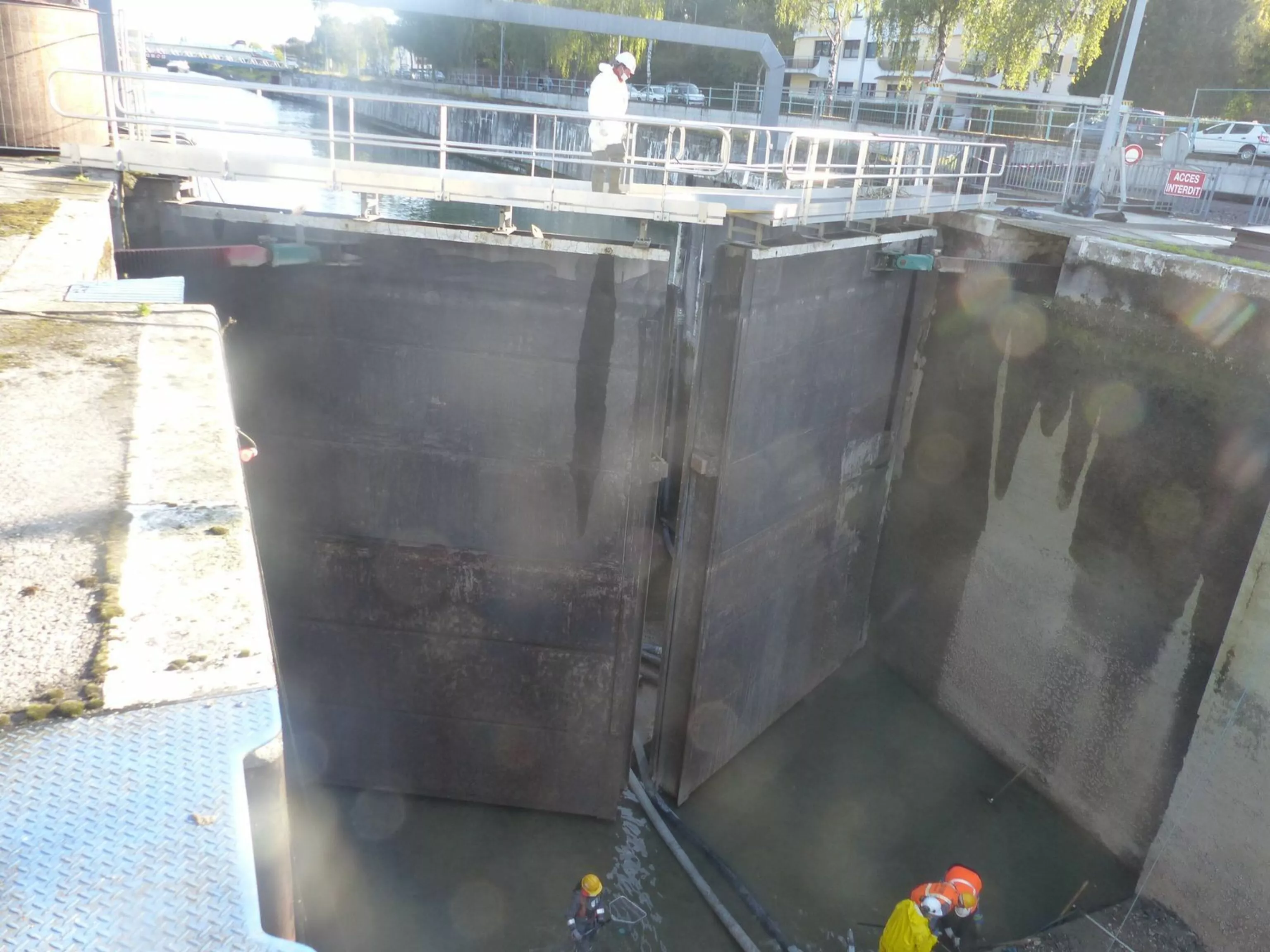 VNF souhaite profiter de la mise à sec des deux écluses lors du chômage de juin prochain pour effectuer une inspection détaillée de portes et vannes en vue de programmer les travaux à prévoir lors d’un futur chômage. Le champ de la mission exclut les organes de manœuvre et le contrôle commande.