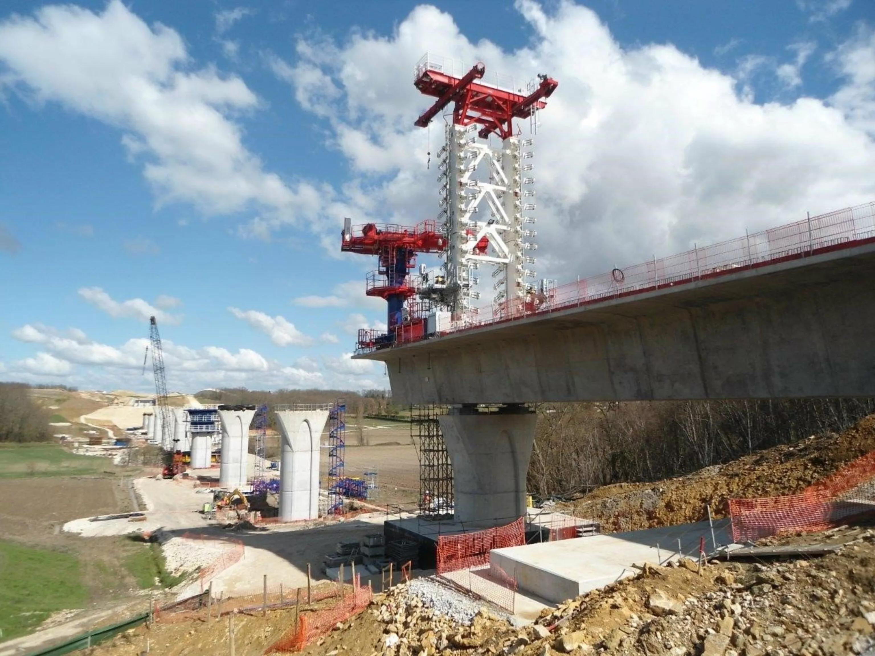La construction des tabliers de ces viaducs nécessitait notamment un mât de 22 m portant 56 haubans provisoires.